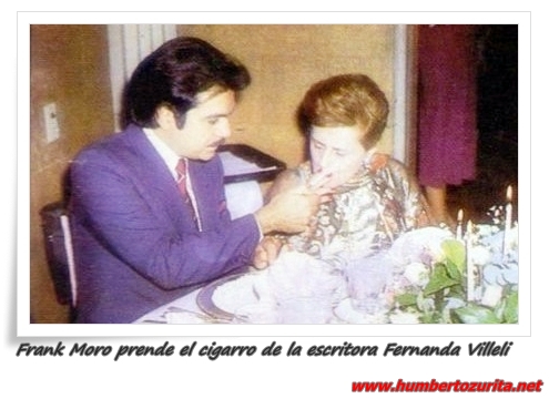 Frank Moro prende el cigarro de la escritora Fernanda Villeli